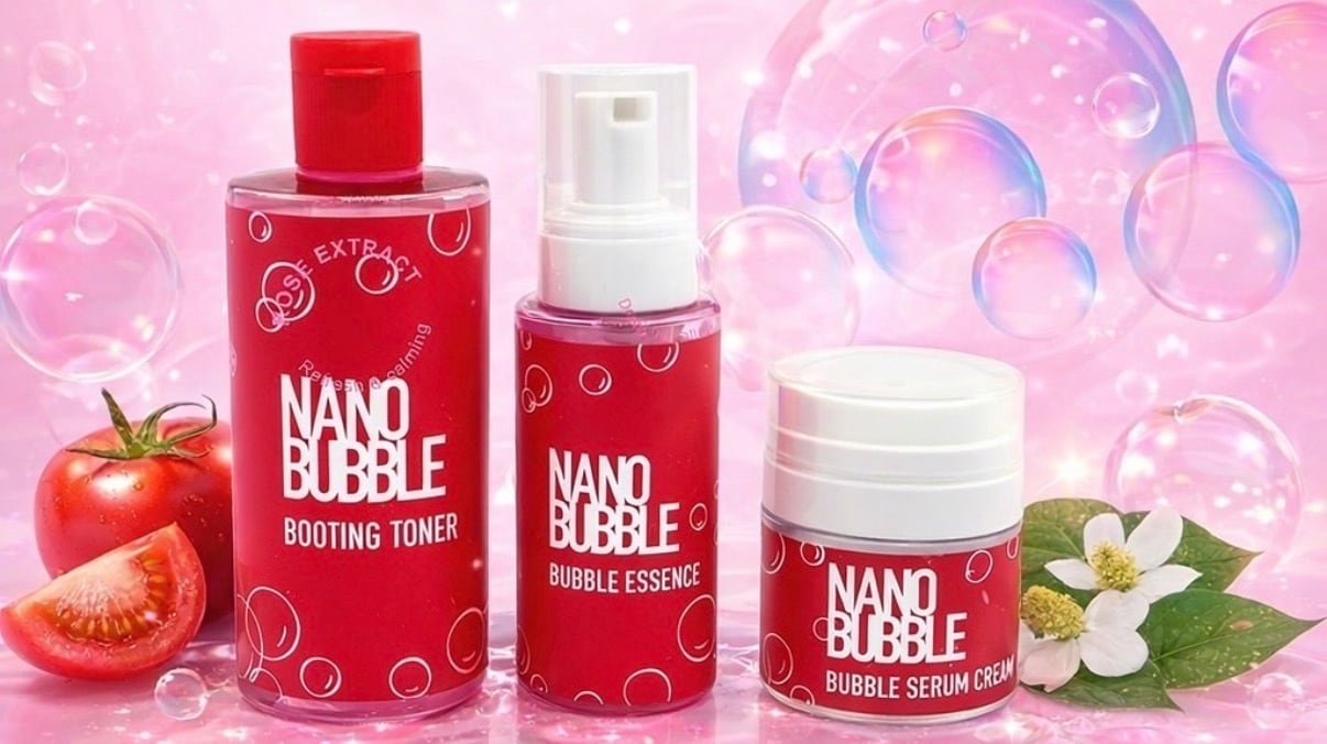 ※3点セットプチプレゼント付きは 4/30までです。 科学と自然の発想から生まれた、新しいスキンケアライン。 韓国サムスンメディコスの特許技術「ナノバブル抽出法」に着目し、誕生しました。 微細なナノバブルと美容成分を組み合わせ、 肌をすこやかに整えながら、なめらかでクリアな印象の肌へ導きます。 ★皮脂分泌を抑制しアクネ菌を阻害 ★約4週間で重度のニキビの明確な改善を確認 ★肌の炎症を根本から鎮め毛穴の目立たない肌へ 韓国※特許技術「ナノバブル抽出法」 ・ブースティングトナー(化粧水)5,390円 ・バブルエッセンス(泡タイプ美容液)5,830円 ・セラムクリーム(自己発泡タイプのクリーム) 6,490円 3点セット17,710円 3点セットご購入の方へ 限定プレゼント付き‼️ 成分 ■ トマトエクソソーム(うるおい・透明感) トマト由来のエクソソームを配合し、 うるおいを与えながら、明るくクリアな印象の肌へ整えます。 リコピンやビタミンCを含むトマト由来成分により、外的環境による乾燥から肌を守り、すこやかな状態をサポートします。 ⸻ ■ AC ZERO(肌コンディションケア) 7種の植物由来成分をバランスよく配合。 (ヤナギ樹皮/ツバキ葉/ツボクサ葉/アカマツ葉/ベルガモット葉/コーヒー種子/もずく) 肌をすこやかに保ち、 ゆらぎやすい肌や皮脂バランスが気になる方のスキンケアをサポートします。 ⸻ ■ ドクダミエキス(整肌成分) 和漢植物として知られるドクダミを、ナノバブル抽出法で配合。 肌をすこやかに整え、 キメの乱れや毛穴の目立ちにくいなめらかな肌へ導きます。 ⸻ 【ナノバブルシリーズ ラインナップ】 ● ブースティングトナー(化粧水) 肌をうるおいで満たし、次に使うスキンケアのなじみをサポート。 乾燥を防ぎ、すこやかな肌状態へ整えます。 ⸻ ● バブルエッセンス(泡タイプ美容液) 泡状のテクスチャーでやさしくなじみ、 うるおいを与えながら肌をなめらかに整えます。 (CICA・ナイアシンアミド・ヒアルロン酸 配合) ⸻ ● セラムクリーム(自己発泡タイプクリーム) 肌にのせると微細な泡が広がるユニークなテクスチャー。 うるおいを閉じ込め、ハリのあるなめらかな肌へ導きます。